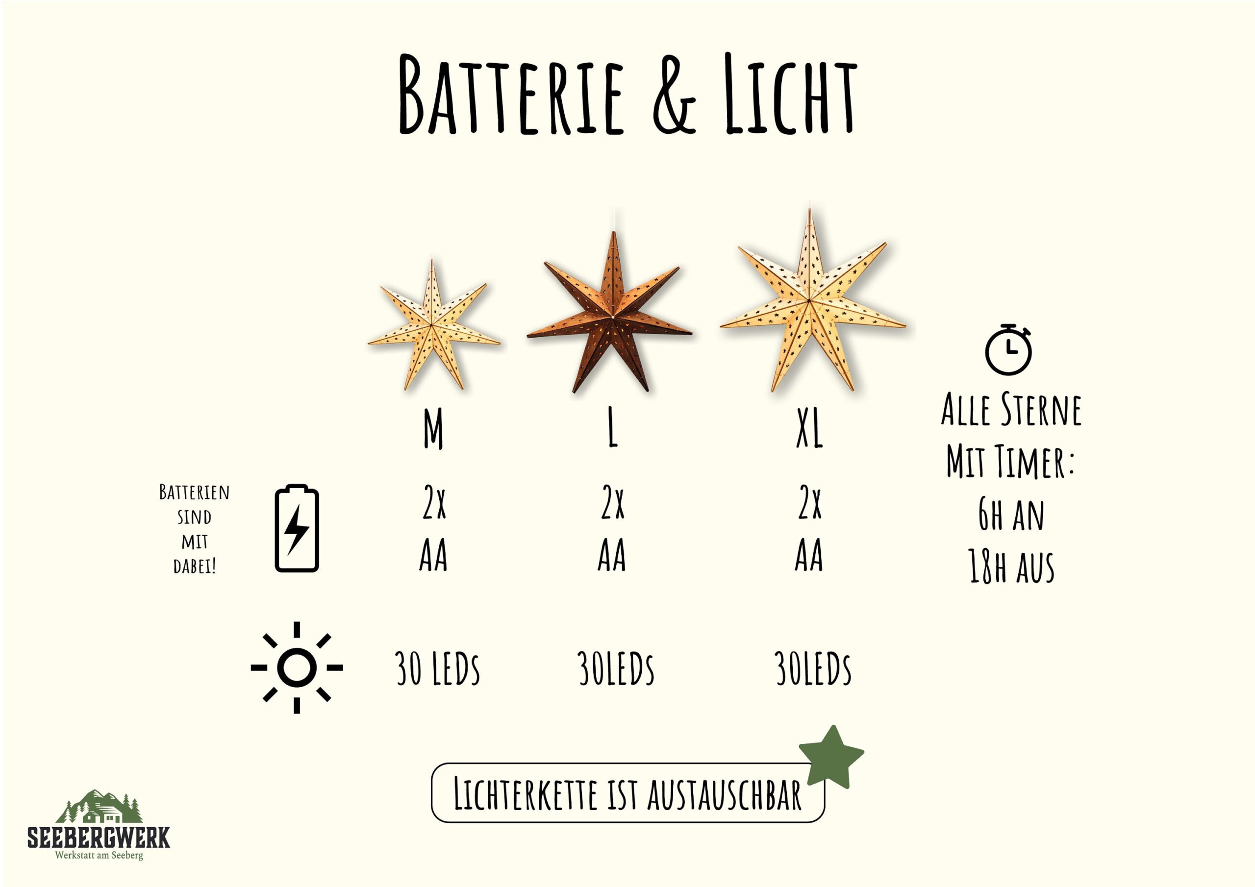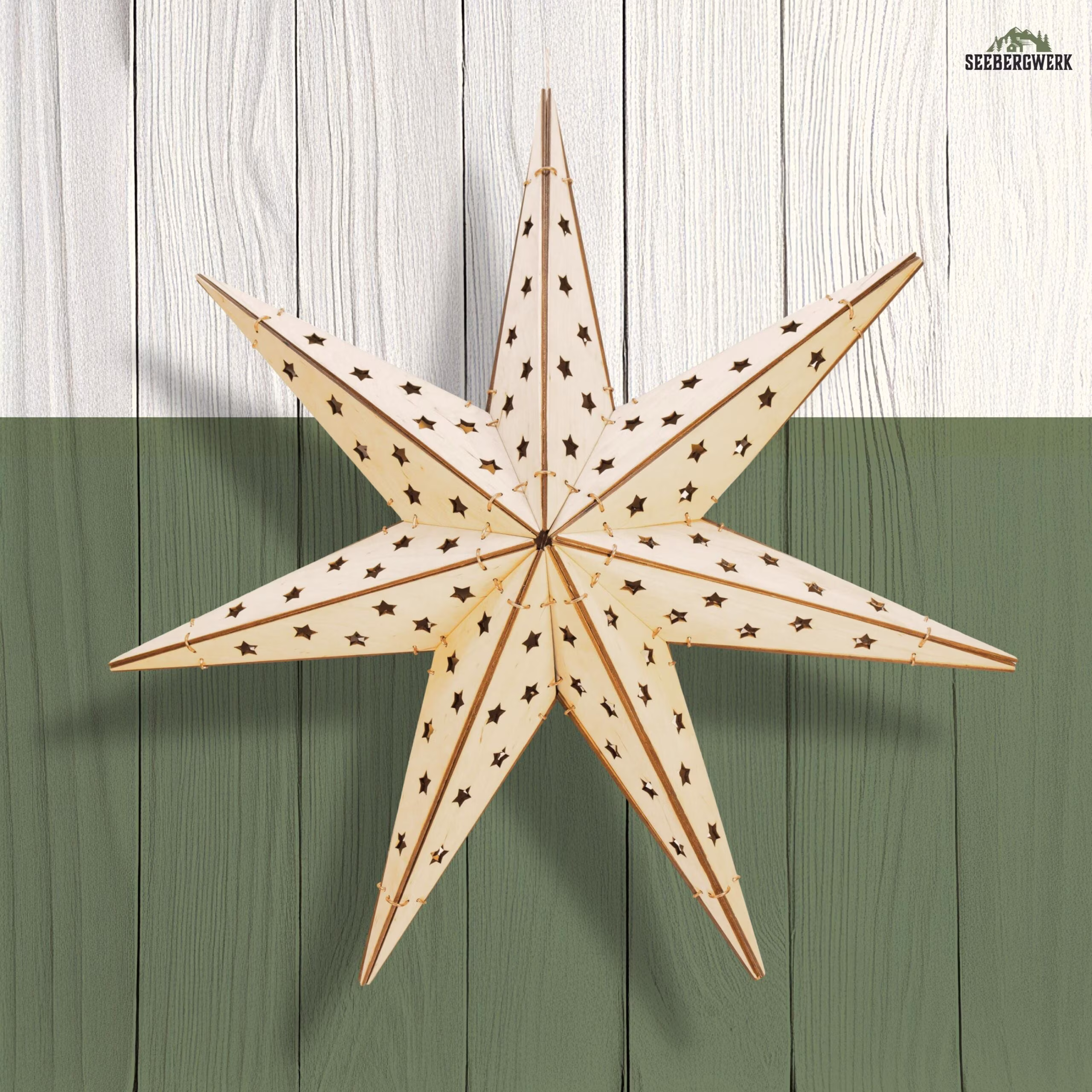 LED Weihnachtsstern aus Holz (7-zackig) mit Timer | Handgefertigte Weihnachtsdekoration